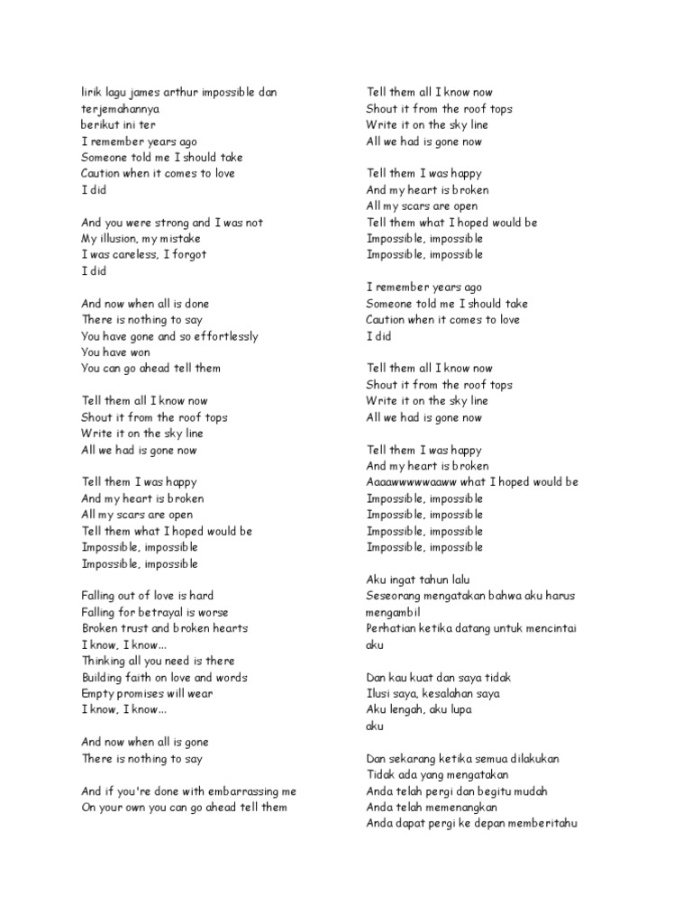 Lirik Lagu James Arthur Impossible Dan Terjemahannya Pdf